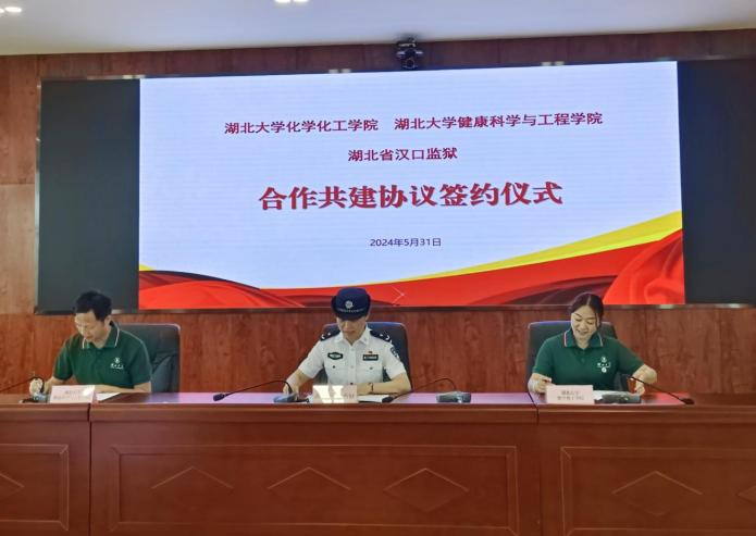参观结束后,湖北省汉口监狱主要负责同志,湖北大学化学化工学院党委书记陈琴、健康科学与工程学院党委书记林二友代表所属单位签订“合作共建协议书”,旨在进一步推进监校在法治教育、人才培养、学术交流、廉政建设、志愿服务、社会实践等方面的深化合作,共同绘就高质量发展新蓝图。