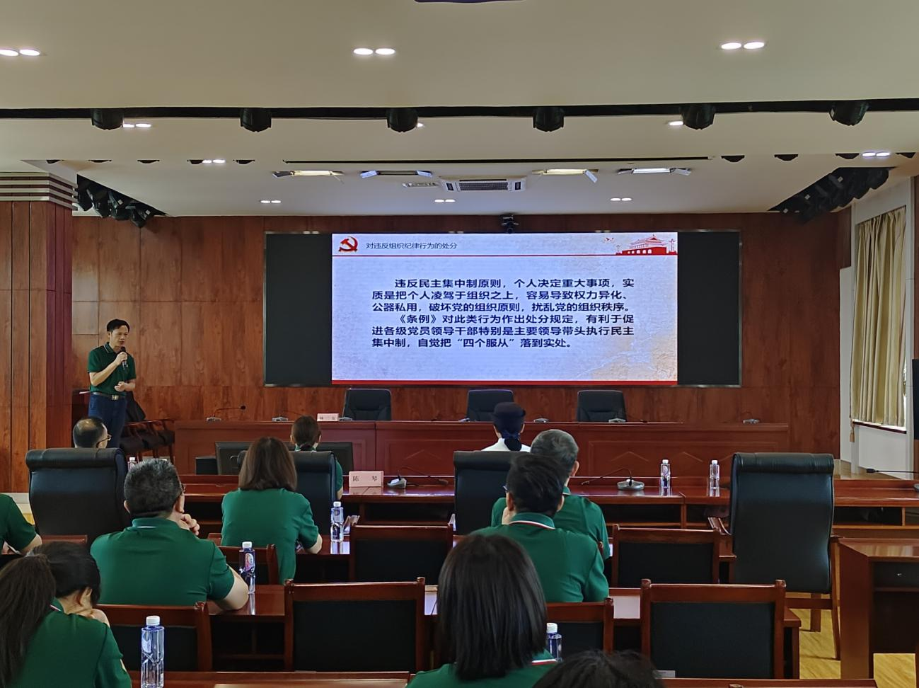 陈琴、林二友现场讲授纪律党课,围绕《中国共产党纪律处分条例》文本内容,结合实际案例,重点为在座党员讲解了政治纪律、组织纪律,号召大家以本次警示教育为契机,进一步系好廉洁自律“风纪扣”,提高拒腐防变“免疫力”,始终做到忠诚干净担当。