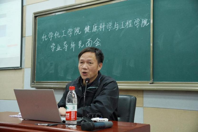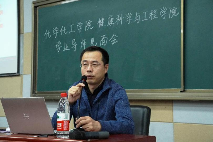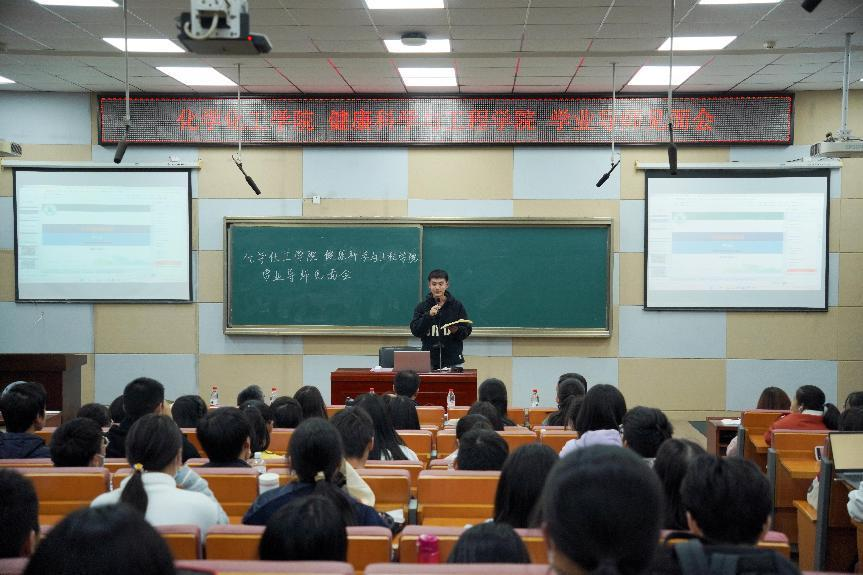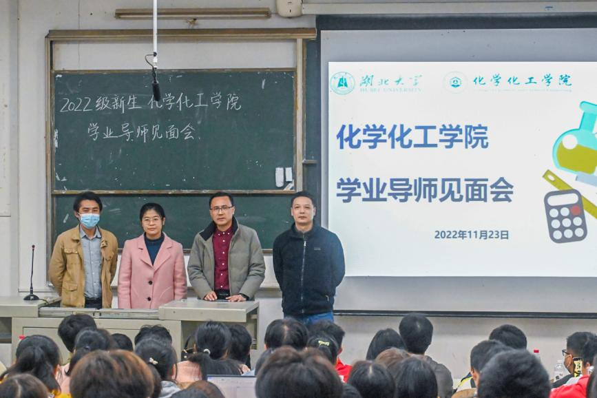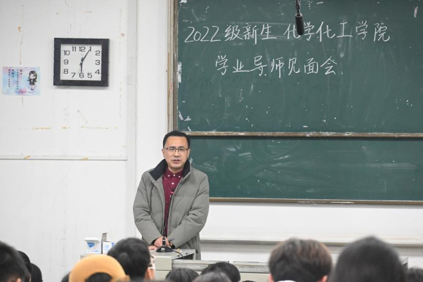 会后,两院学业导师与领导班子前往B100、B300教室与学生进行交流。化学化工学院领导从师资队伍、学科专业、人才培养、科学研究和未来期待等方面为学生介绍学院情况。院长张修华指出:“化学化工学院拥有优秀的师资力量,能为大家提供丰富的学习资源。未来,学院还会根据个人兴趣爱好和能力侧重进行专业分流,为学生提供更广阔的工作平台,让学生将知识外化于行,学有所得。”他鼓励学生,“只要肯做,就大有可为。”