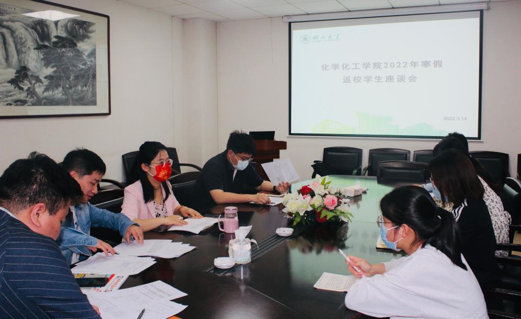 3月14日下午,化学化工学院在D320会议室举行2022年寒假返校学生座谈会,学院党委副书记、辅导员、班主任及本科生代表参加了会议。座谈会由辅导员张梦主持。