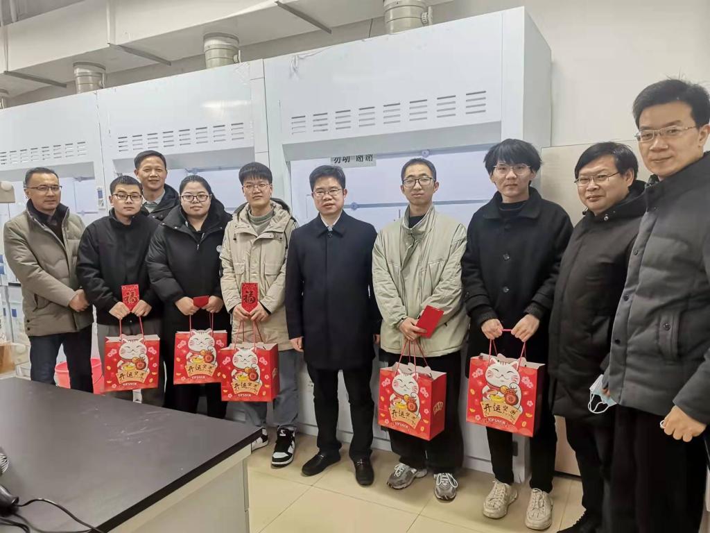 1月29日上午,校党委常委、副校长艾青松,带领研究生院院长李兆华、研究生工作部副部长李明,来我院慰问春节留校学生,为同学们送来春节祝福和慰问礼包。学院党委书记林二友、院长张修华、副书记刘念陪同慰问。
