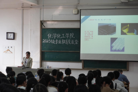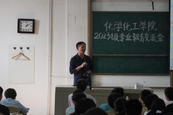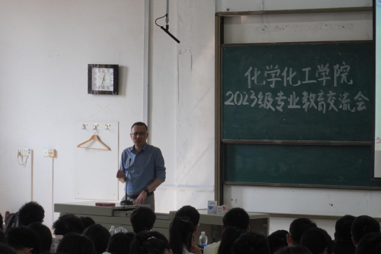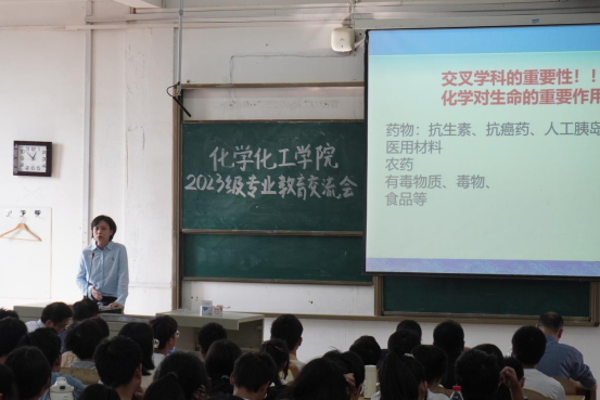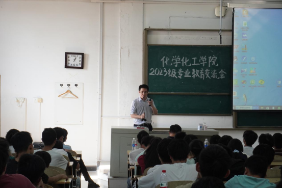 31日中午,化学化工学院于阳逻校区B200召开了2023级专业教育交流会。化学化工学院党委书记林二友、院长张修华、副书记刘念、副院长汪航行、各系主任及化学化工学院2023级全体本科生参加本次交流会。汪航行主持本次会议。