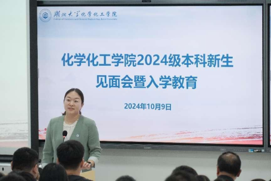10月9日晚,化学化工学院赴阳逻校区开展2024级新生见面会暨入学教育。化学化工学院党委书记陈琴、院长张修华、党委副书记刘莹、辅导员王珺瑶、徐逸凡、王路及化学化工学院2024级全体本科生参加本次活动。活动由刘莹主持。