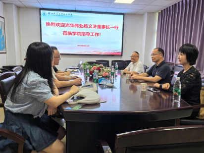 8月23日,深圳光华伟业股份有限公司董事长杨义浒一行来院,洽谈校企深化合作相关事宜。学院党委书记陈琴、院长张修华、副院长文为及相关教师参加座谈并陪同考察。