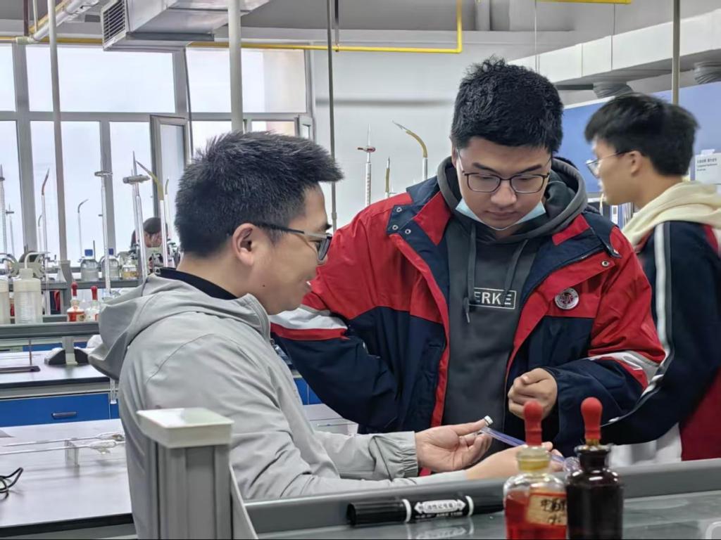 为深化基础教育与高等教育衔接,激发中学生对科学研究的兴趣,2025年11月6日,武汉中学高二(12)班的全体同学在武汉中学课程教学主任、化学教师、湖北大学校外硕导李钊鹏老师的带领下,走进化学化工学院分析化学实验室,开展了一场别开生面的滴定分析实验研学活动。