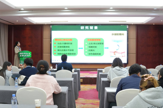 我院陈朝霞副教授在会议上作了题为《基于智能多功能水凝胶敷料的皮肤修复与再生策略》的学术报告,系统介绍了团队在智能响应水凝胶构建及皮肤组织修复领域的最新突破,获得了现场专家学者的高度关注和积极评价。