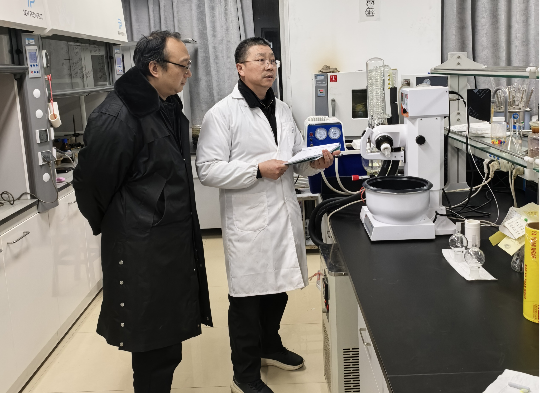 本次检查重点聚焦于实验室、危化品暂存库等区域,检查组成员仔细排查用电安全、消防设施等方面可能存在的隐患,检查过程中,院领导与正在实验室开展科研工作的学生进行了亲切交流,详细询问了实验进展与假期安排,反复叮嘱大家要牢固树立“安全第一”的意识,严格遵守实验室各项规章制度和操作规程,特别强调了人离断电、关好门窗、规范处置实验废弃物等安全细节,确保个人与实验室安全,并提前向大家致以新春的问候。