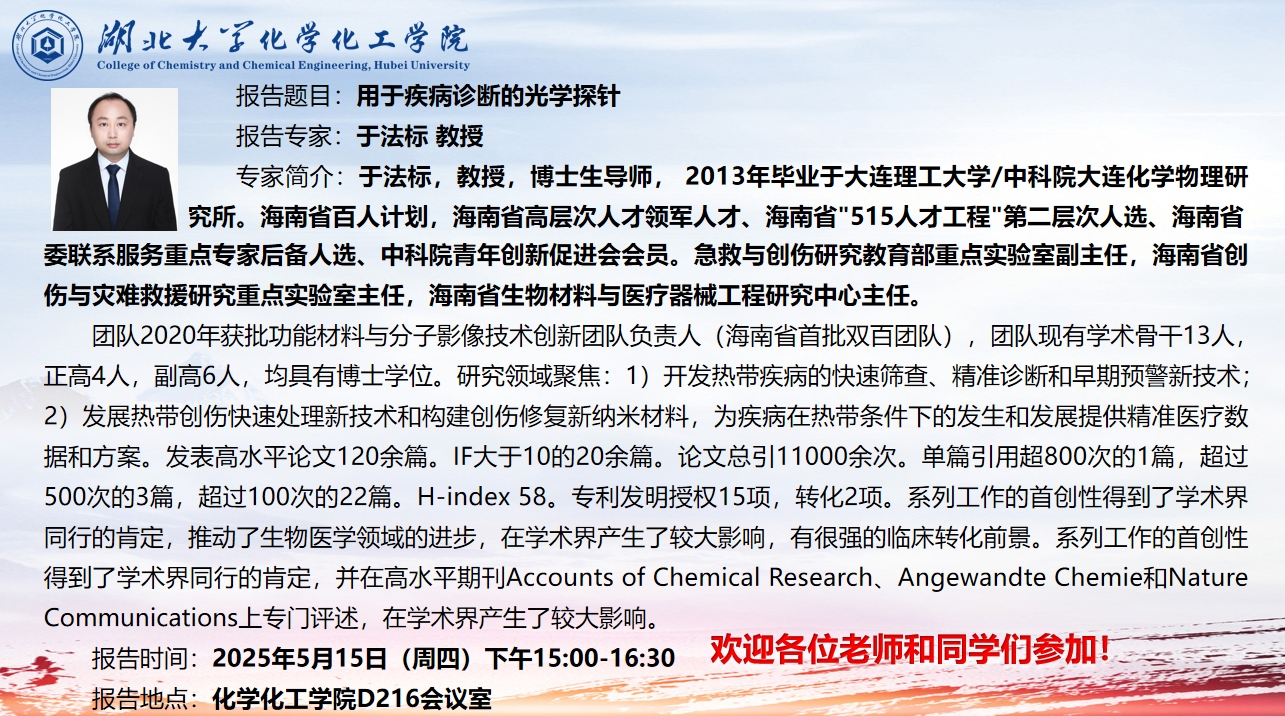 报告地点:化学化工学院D216会议室