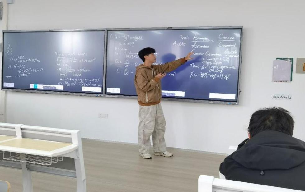 在湖北大学化学化工学院的课堂上,每学期初总会响起这样的声音:“老师,这题我听懂了,但自己做还是不会”“知识点太多了,英语还没跟上,中文又糊了”。面对《化学分析导论》这门知识点密集、双语教学难度大的课程,伍珍教授想出了一个妙招——她把讲台让了出来。